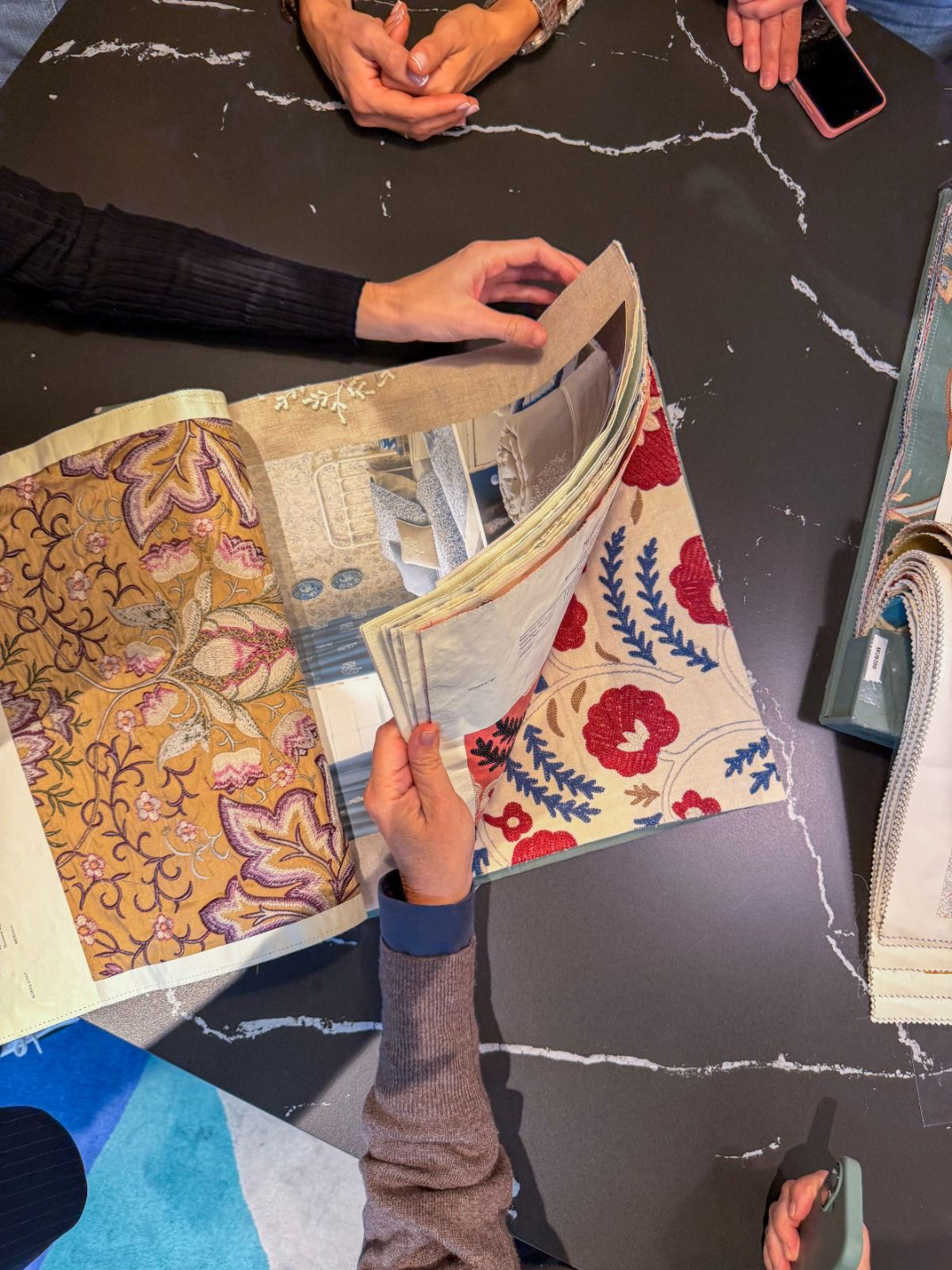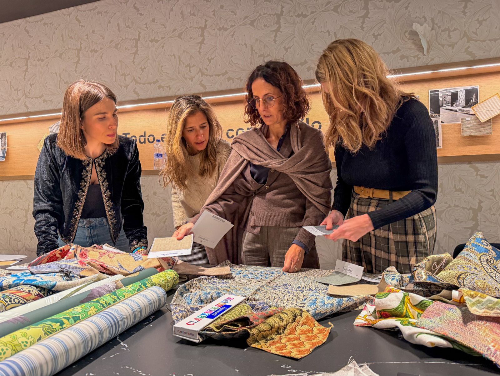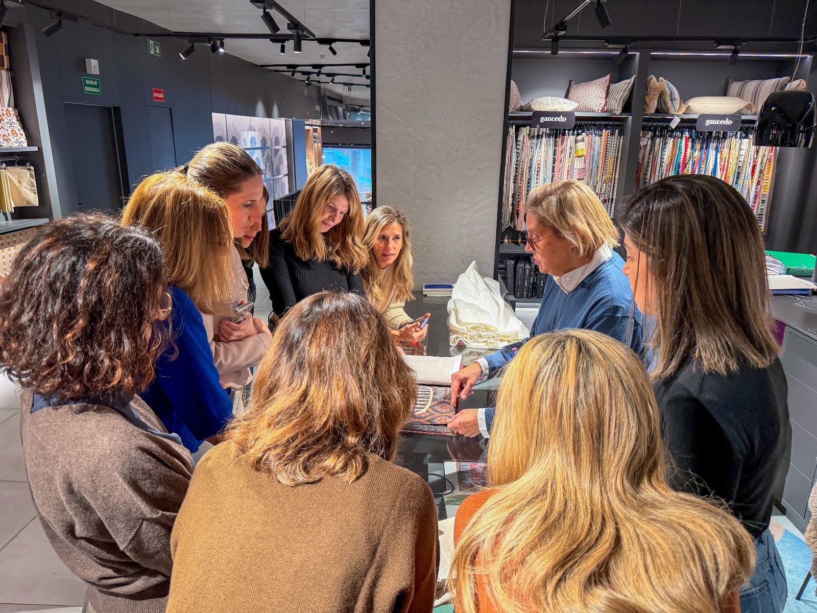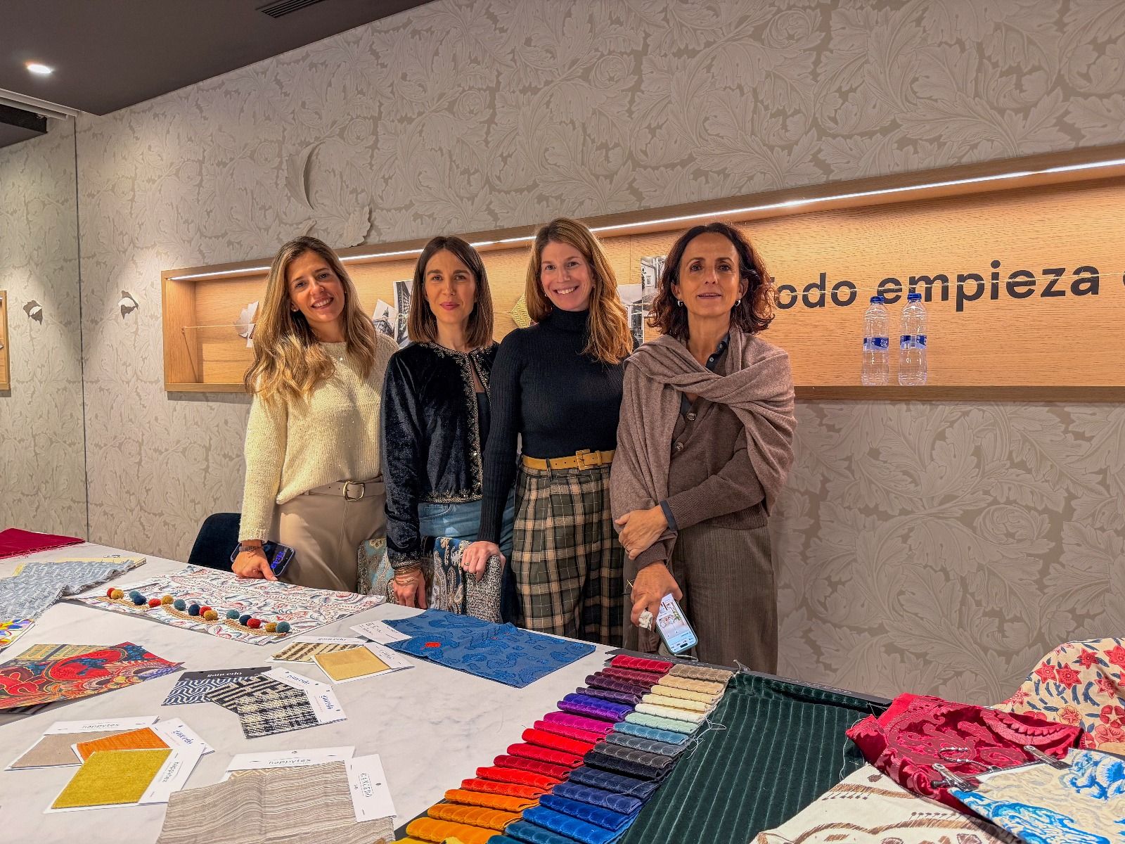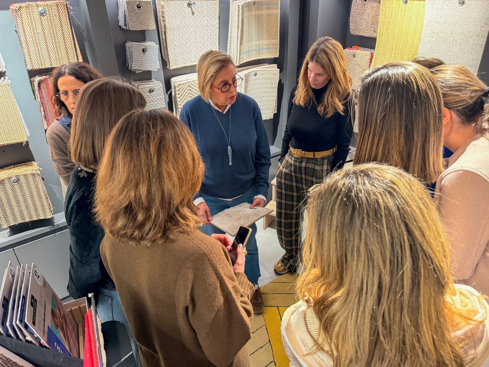 Durante la visita, exploramos las últimas tendencias en confección y aprendimos a coordinar textiles, papeles pintados y alfombras para crear diferentes atmósferas según la intención que se quiera transmitir. La experiencia fue una verdadera inmersión en el mundo del color, las texturas y la composición.