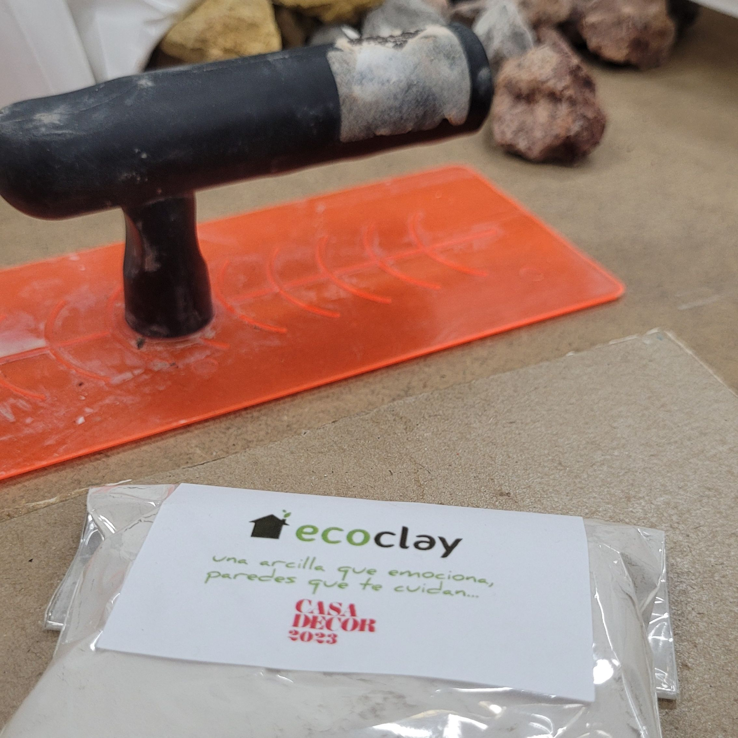 Ecoclay es un revestimiento natural de arcilla disponible en forma de morteros, pinturas y placas.