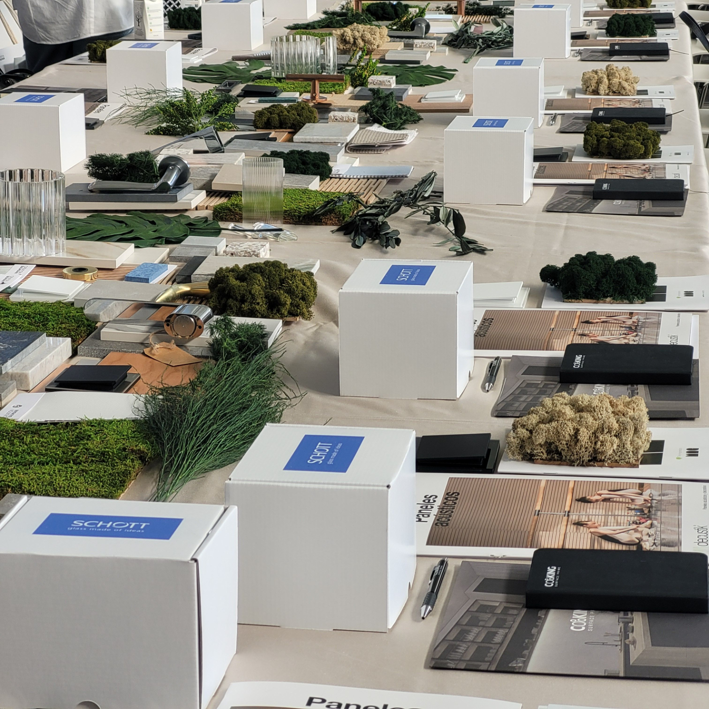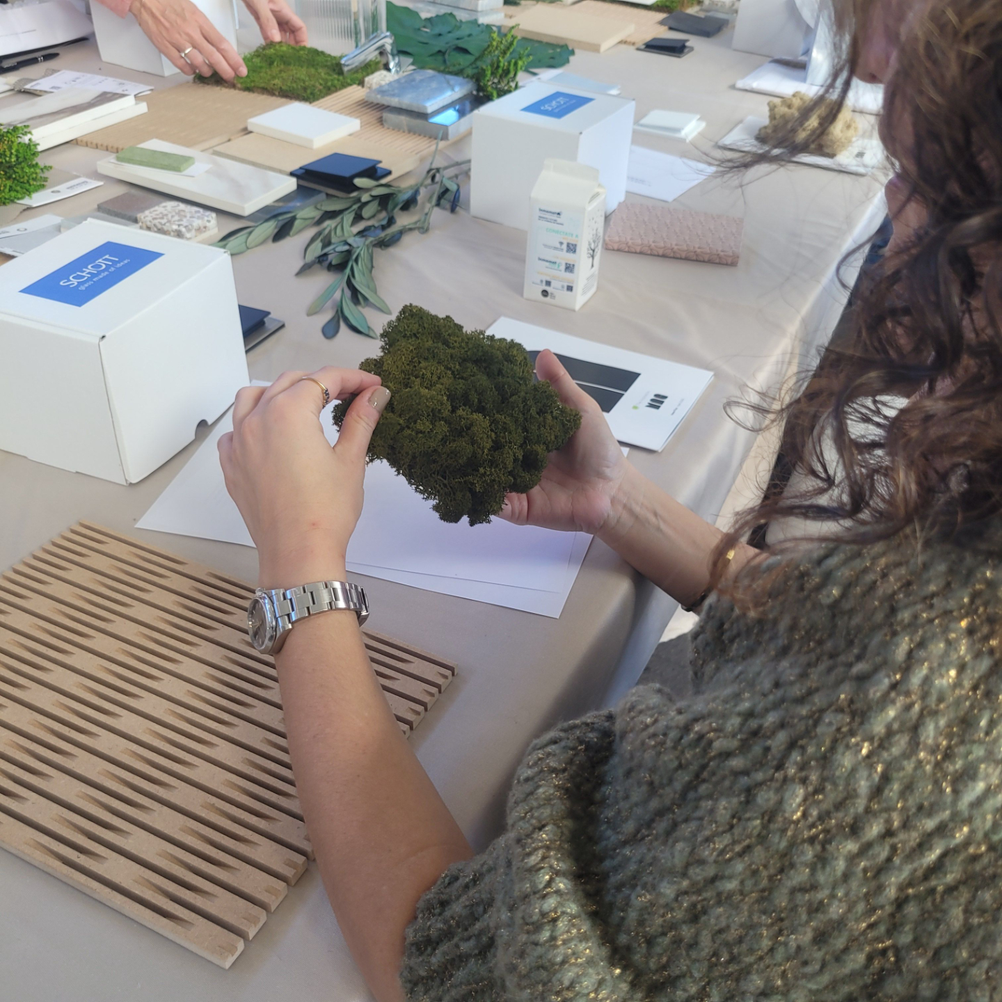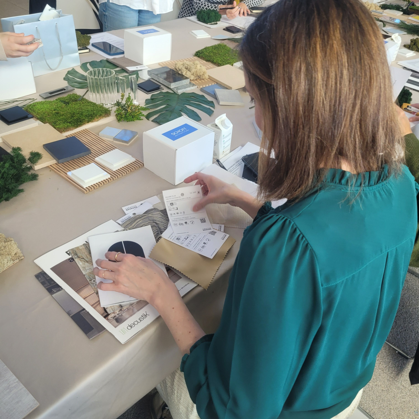 En este taller hemos descubierto nuevos materiales para diseñar hoteles y proyectos retail. Primero hemos realizado una parte teórica en la que nos han presentado los proveedores que han participado en esta puesta en escena de materiales: Wanna Rock You, Mármoles Sol, Cooking Surface, Green Area, Schoott AG, Olivari, Mapei, Niessen, Création Baumann y Decustik